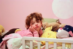 This is what Zoe looks like if I have to wake her up from her nap. She would probably sleep 4 hours during the day if we let her (and then never want to sleep at night). Her attitude usually matches her facial expression- grumpy!